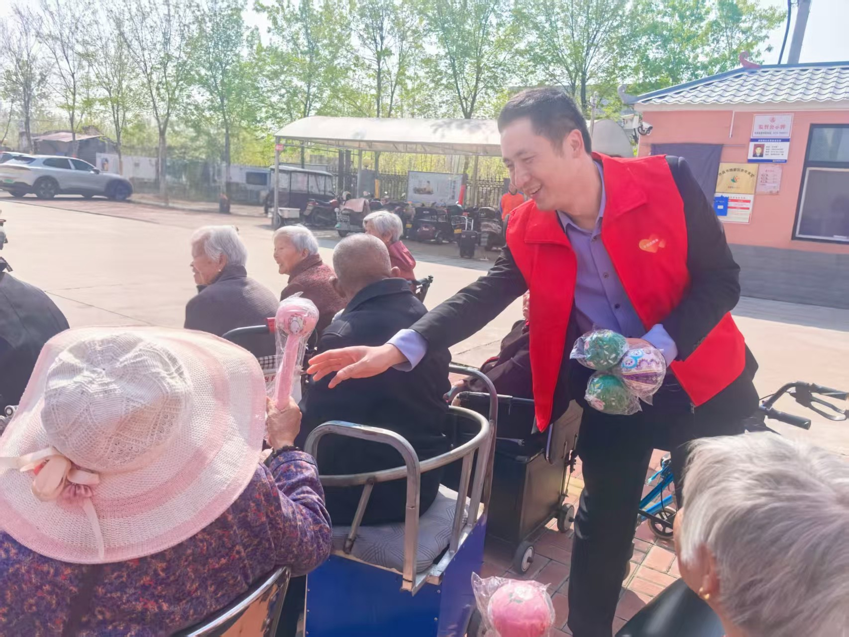 活动当天,党员代表们将精心准备的大米、面粉、食用油等爱心物资送到了福利院。在福利院负责人的引导下,党员们实地参观了院内的生活区、活动室等场所,详细了解了福利院日常运营、人员配置以及老人们的身体状况和生活情况。党员们与院内的老人和孤残人员亲切交谈,耐心倾听他们的心声,并叮嘱他们保重身体,保持乐观心态,让福利院里的特殊群体深切感受到了来自社会大家庭的温暖与关爱。